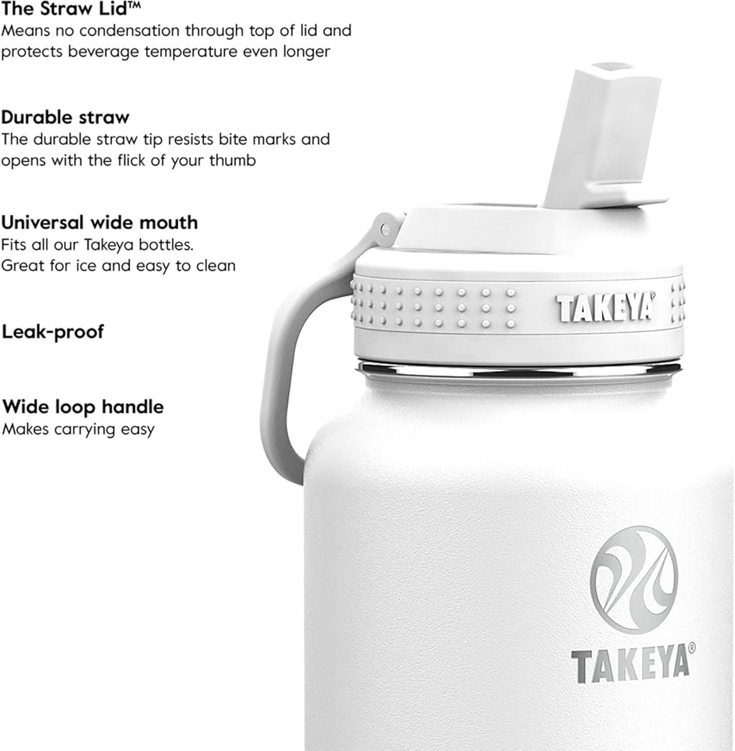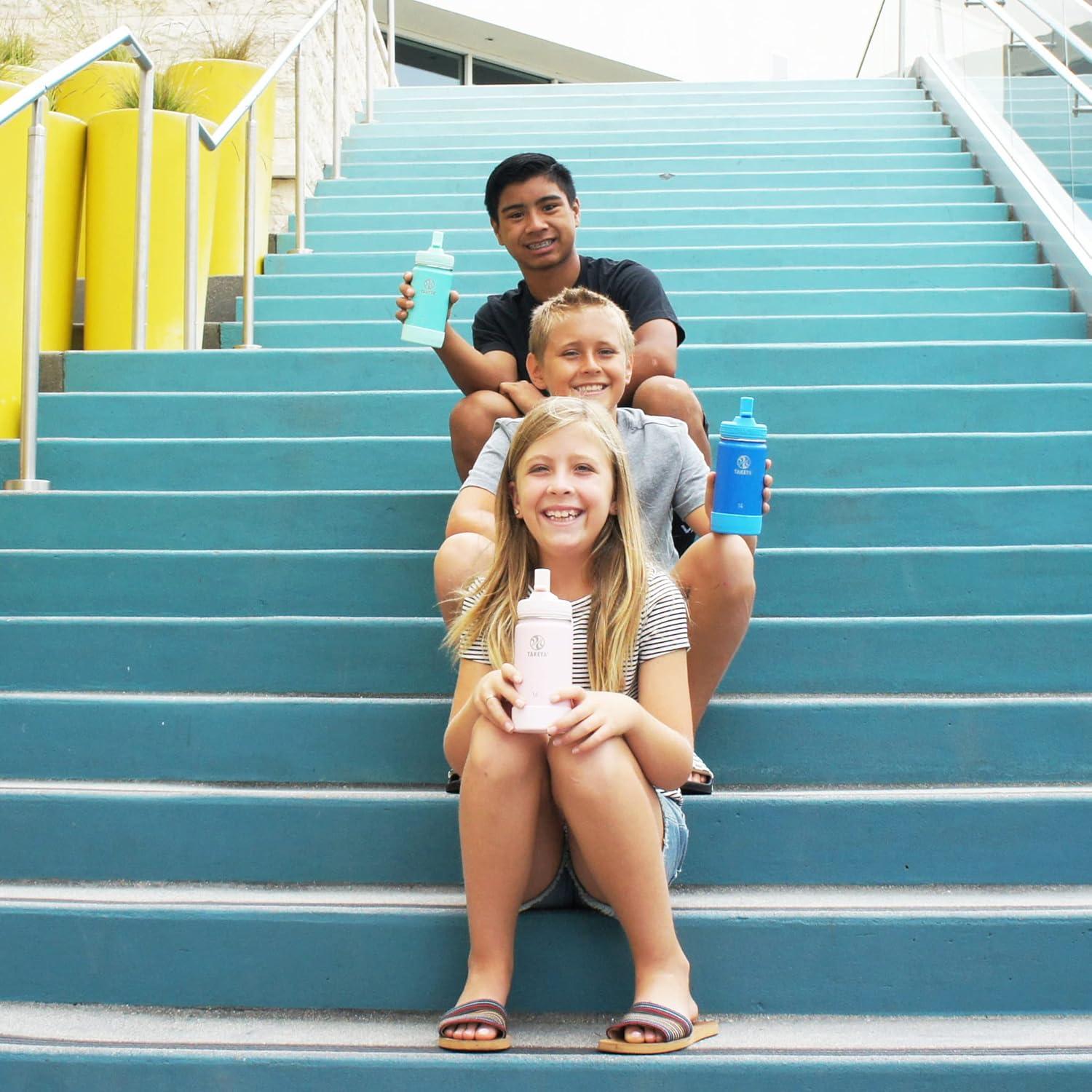 The Takeya Actives Kids Water Bottle with Straw Lid is a modern, durable water bottle designed for active kids. Featuring a wide loop handle, this water bottle is easy to carry to school, sports practice, or outdoor adventures. Crafted from high-grade, BPA-free materials, this bottle ensures safe hydration while helping to reduce single-use plastic waste. The reusable water bottle lid includes a straw, making sipping on the go both convenient and mess-free. Equipped with a leak-proof bottle lid and a spill-proof straw lid, the kid's water bottle guarantees no spills in backpacks or bags. The classic straw lid provides easy access to your favorite beverages and the carry handle adds extra convenience. The double-wall insulation keeps drinks cold for up to 24 hours, maintaining refreshment no matter where your day takes you. The removable protective bumper safeguards against dings and scratches. Cleaning is a breeze with the dishwasher-safe and easy-to-hand wash water bottle and straw lid design. Whether you need a bottle replacement or a new straw lid, maintaining your water bottle is hassle-free. Choose the Takeya Actives Kids Water Bottle with Straw Lid for a reliable and stylish bottle that supports healthy hydration habits and fits seamlessly into your active lifestyle.