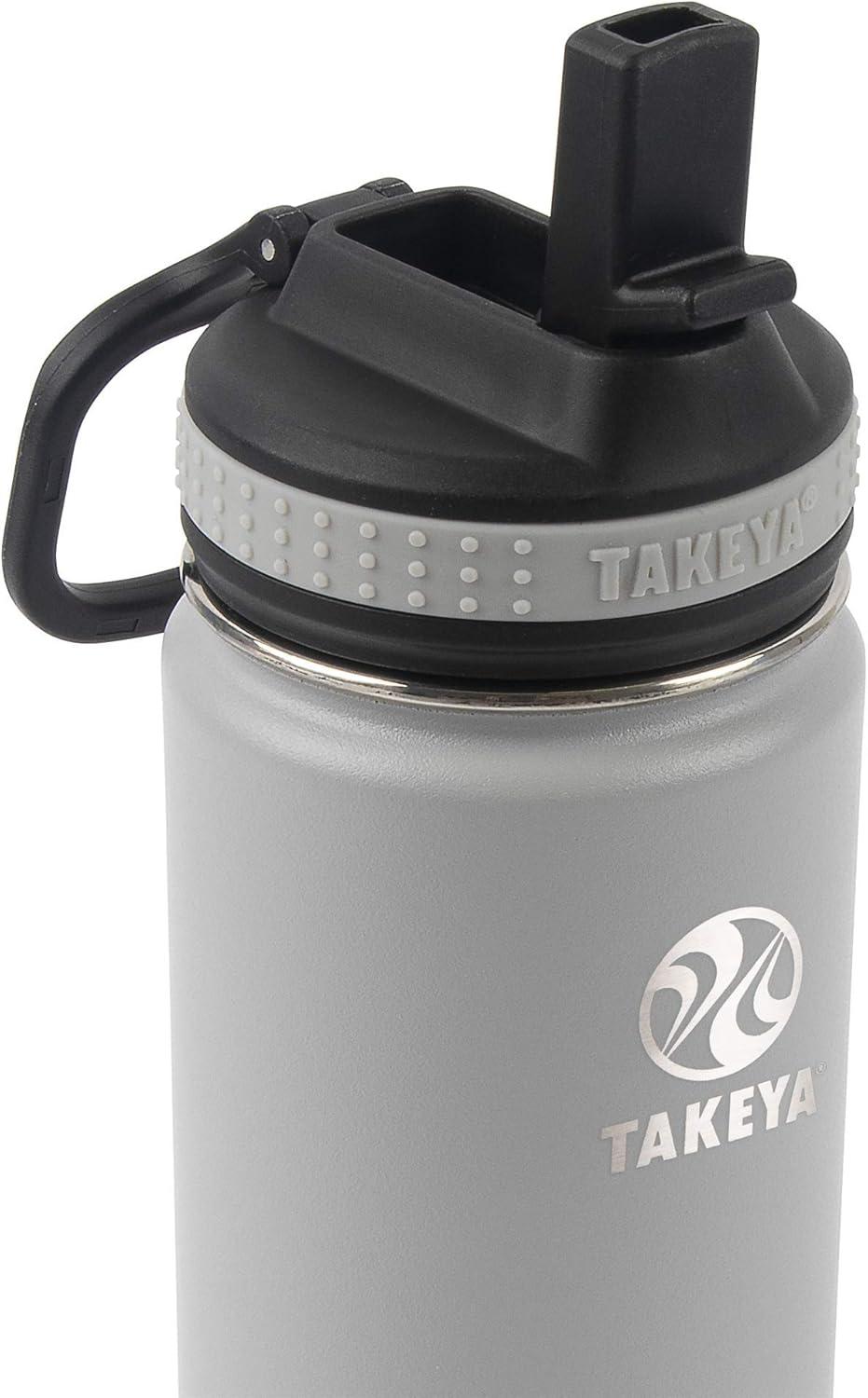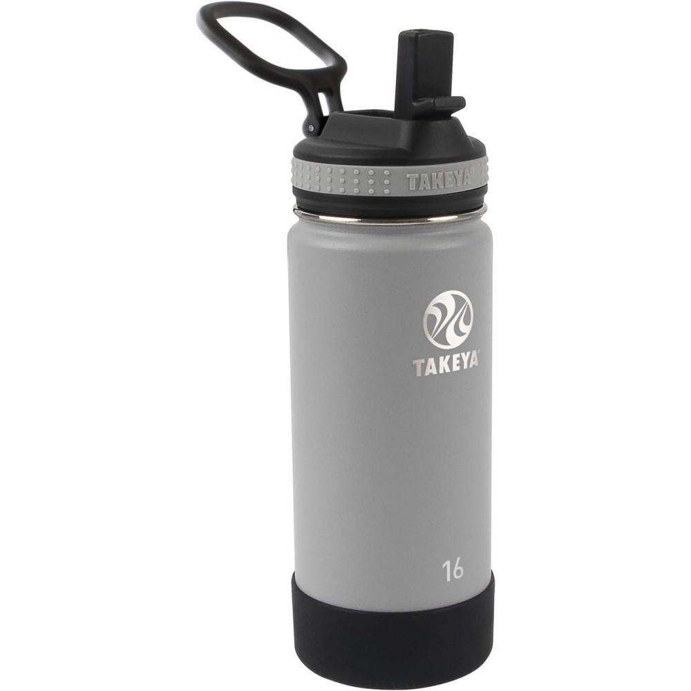 Takeya Actives Kids Water Bottle with Straw Lid – Stainless-Steel Double Wall Insulation – BPA-Free Bottle Lid with Carry Handle – Reusable Bottle with Straw Lid – 16 oz, Platinum/Onyx(Platinum/Onyx)