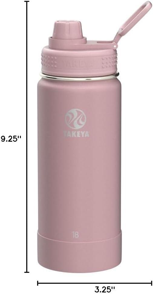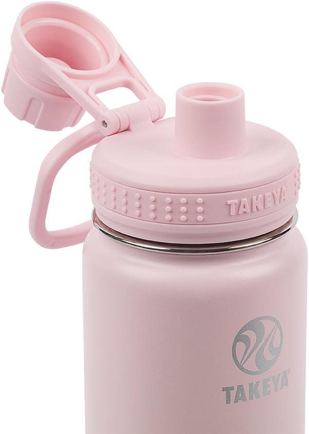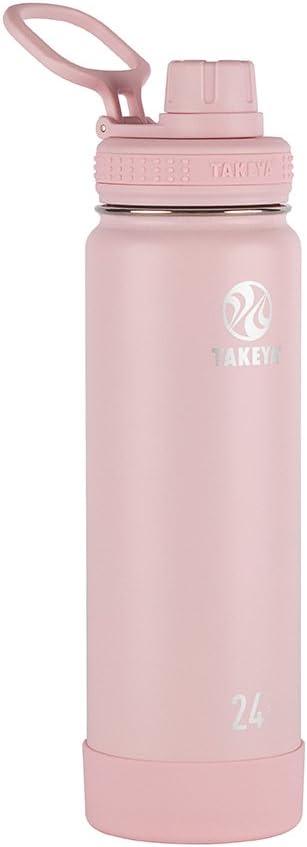 Takeya Actives Water Bottle with Spout Lid – Bottle with Double Stainless Steel Insulation – Dishwasher Safe & BPA-Free – Bottle with Spout Lid & Removable Bumper – 24 oz, Bluestone(Blush)