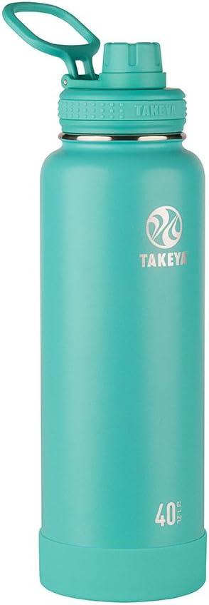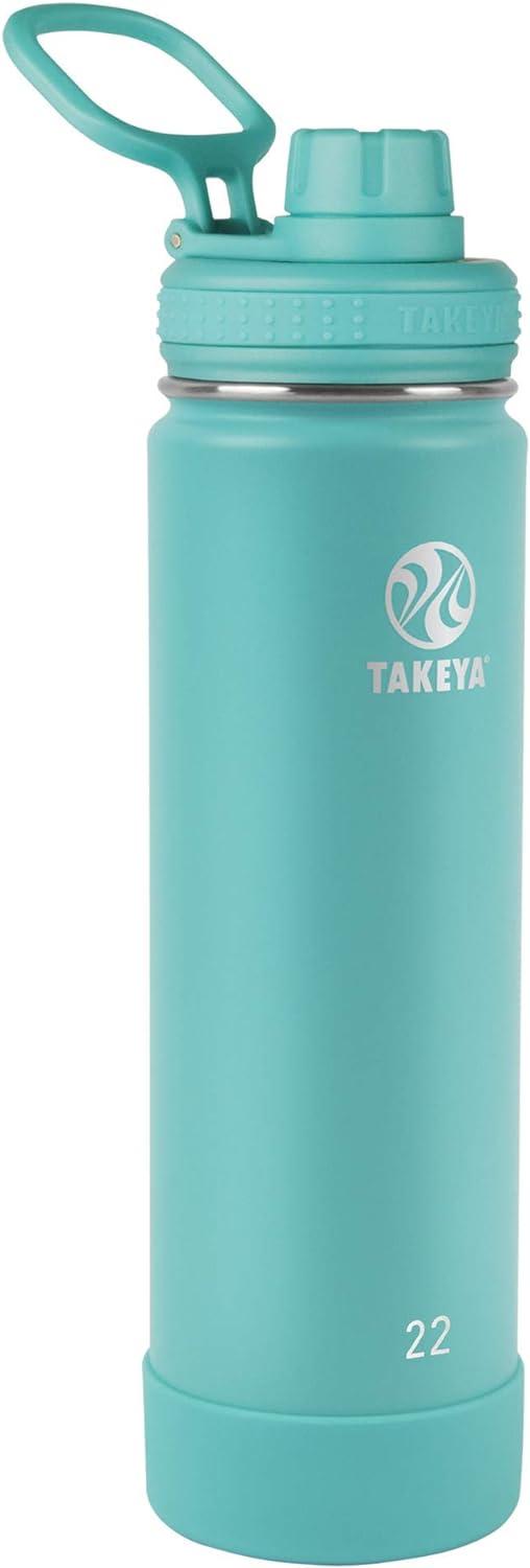 Takeya Actives Water Bottle with Spout Lid – Bottle with Double Stainless Steel Insulation – Dishwasher Safe & BPA-Free – Bottle with Spout Lid & Removable Bumper – 24 oz, Bluestone(Teal)