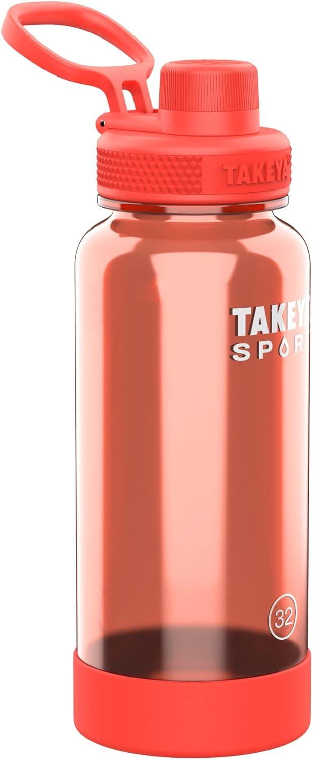 Takeya Tritan Sport Water Bottle with Spout Lid – BPA-Free & Dishwasher-Safe Water Bottle – Reusable Bottle with Lid Handle – Simple Leak-Proof Water Bottle – 32 oz, Pink Sweep(Pro Fire)